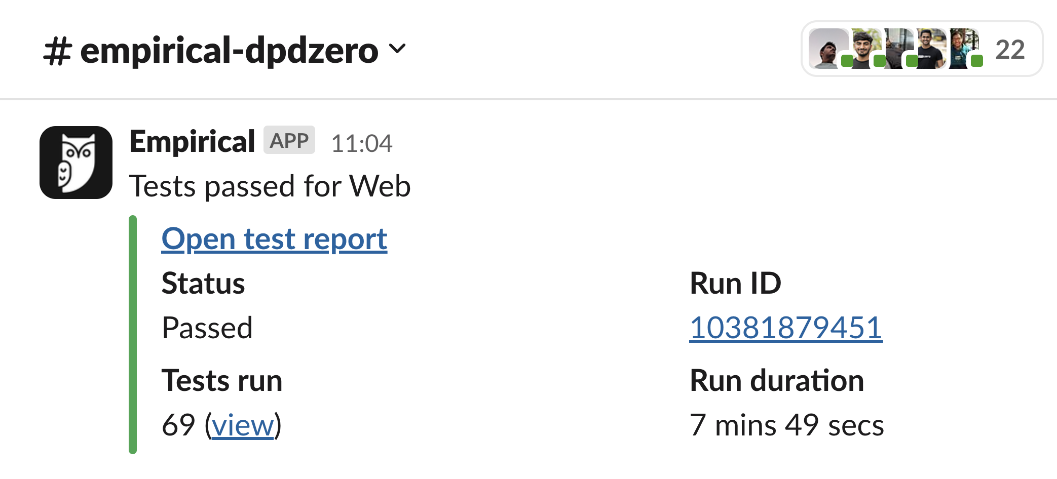 Get runtime infra for parallel test execution built-in, with reports and screen recordings. Get fast test results, straight to Slack.
